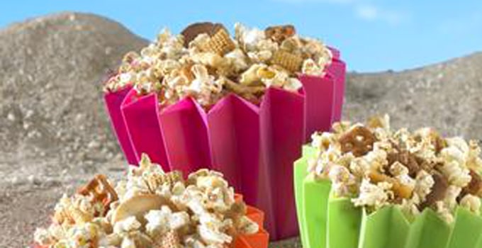 Add soy sauce and hot pepper sauce to 1/3 cup melted butter. Put popped popcorn and seasoned assorted snacks in a large bowl. Pour butter/soy mixture over popped popcorn and snacks; toss. Sprinkle with bacon-onion dip mix; toss again. Spread mixture on a jelly roll pan (15 1/2 by 10 1/2 by 1 inch) and bake in a 350-degree Fahrenheit oven for 8-10 minutes, stirring once.