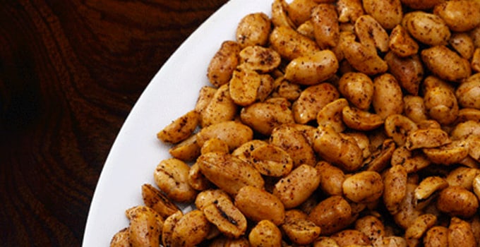 Heat oil in Sweet & Easy over medium heat. Add pizza seasoning (or chili powder) and ground cayenne pepper to oil. Stir to mix. Add peanuts. Cook 2 minutes, stirring constantly to coat and heat all the peanuts. Spread on a non-stick cookie sheet; cool for 10 minutes. Serve warm or cool. Makes about 4 cups.