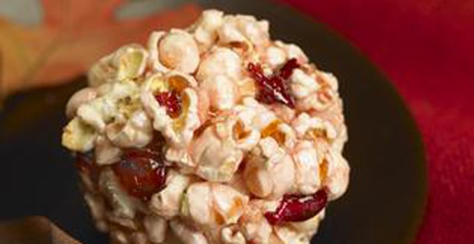 Combine all ingredients, except popcorn, in a heavy saucepan. Bring to a boil; lower heat and cook to 250 degrees Fahrenheit on a candy thermometer. Mixture will bubble up in pan, so watch to keep from boiling over. Pour slowly onto hot popcorn and mix until well-coated. Let stand 5 minutes or until mixture can easily be formed into balls. Butter hands and form into 3-inch balls.