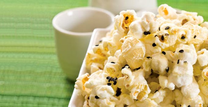Pop your popcorn and while it's still hot place in bowl. Sprinkle the seaweed mixture over the top and toss (carefully!). Allow to cool and add wasabi peas. Toss again.